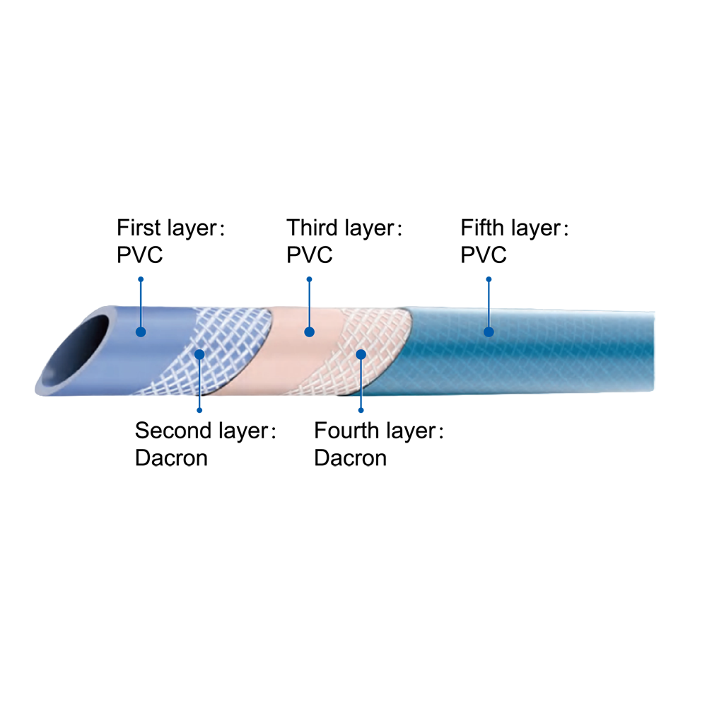 PVC High Pressure Spray HoseDescription: This high-pressure spray hose is manufactured from high-quality PVC material and incorporates a high-strength polyester braided reinforcement layer, with up to five piles. This precision-engineered structure provides the hose with outstanding durability and pressure resistance, enabling it to effortlessly withstand high-pressure working environments and meet the rigorous demands of most industrial and commercial applications. Characteristics: 1. Cold-resistant and heat-resistant, -20℃ to 60℃ Application: It is suitable for various scenarios such as car washing, yard cleaning, agricultural irrigation and horticultural irrigation. |